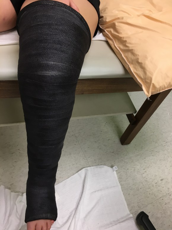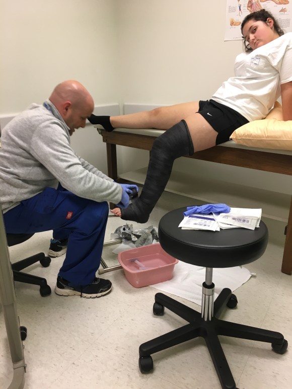 After Lyndsey and Dr. Pederson examine and look at everything we are told she will be on bed rest and have a cast for the next two weeks.